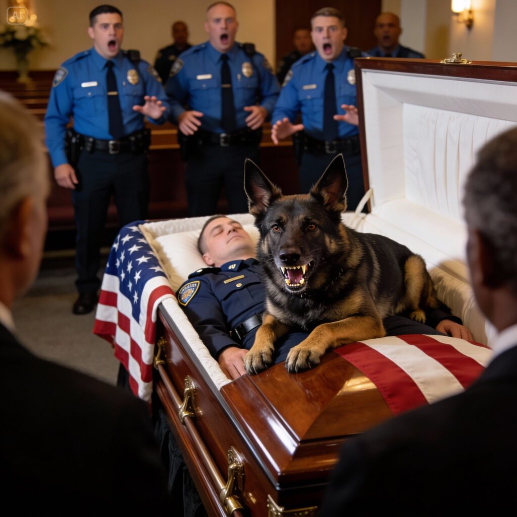 He had stopped mid-stride, his hat clutched in his hands so tight his knuckles were white. His eyes were wide, locked onto the German Shepherd standing inside the casket. And for a split second—before he put his mask back on, before he composed his face into the mask of a grieving colleague—I saw it.