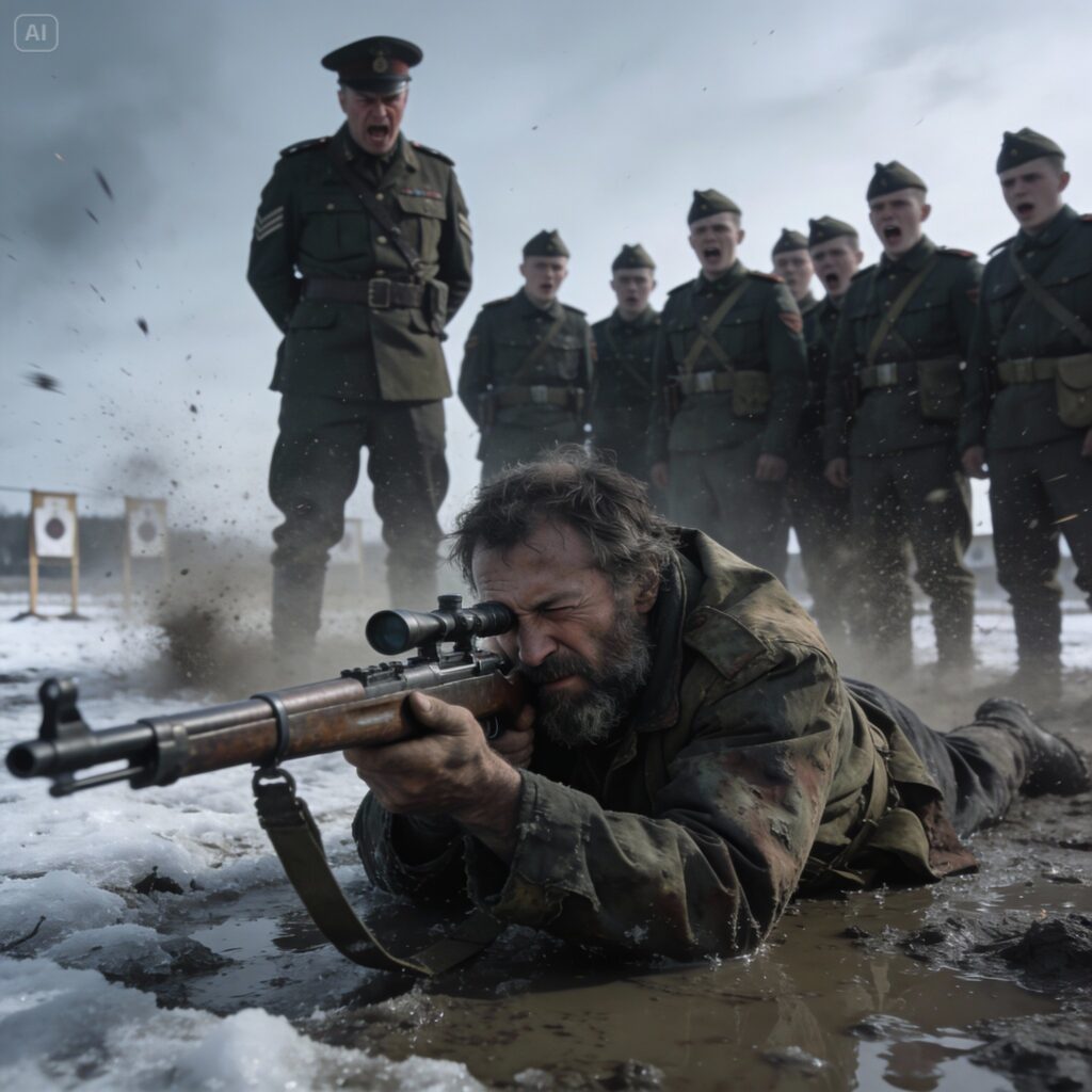 I lowered myself into the prone position in the freezing dirt. The laughter around me stopped. The whole range went dead silent. They were all watching the homeless guy, waiting for the humiliation.