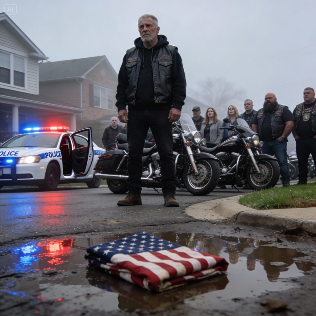 I looked at the water soaking into the fabric, the dirt staining the white stripes, and then I looked up at the officer. He was smiling. He thought he’d won. He had no idea that he hadn’t just insulted a group of bikers—he had just declared war on the memory of every man I ever served with.