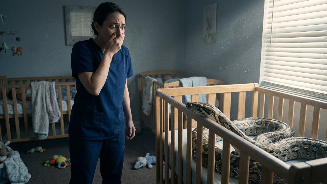 It wasn’t just a snake; it was a monster. It was as thick as my thigh, its body coiled in endless layers of pure muscle. The head, broad and blunt, rested heavily on the wooden bars of the crib, motionless but unmistakably alive.