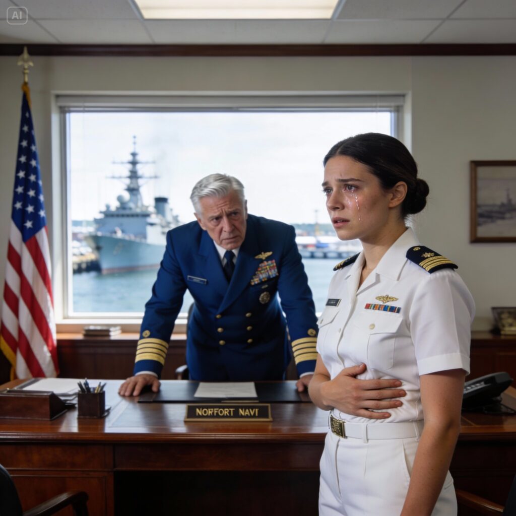 The air conditioning in Admiral Hayes’s office hummed, a low, mechanical drone that usually faded into the background. But in that silence, as my hands trembled at the hem of my uniform shirt, it sounded like a roar.