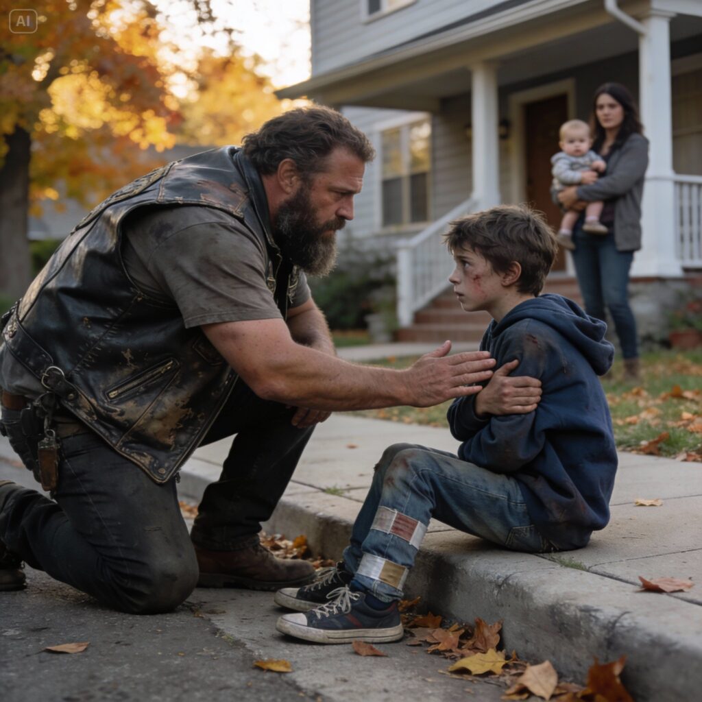 I knelt down on the pavement so I wasn’t towering over him. “You’re a hero, son,” I said, my voice wrecking in my throat. “You saved my boy. We need to get that shoulder looked at right now. We’re going to take you to the emergency room.”