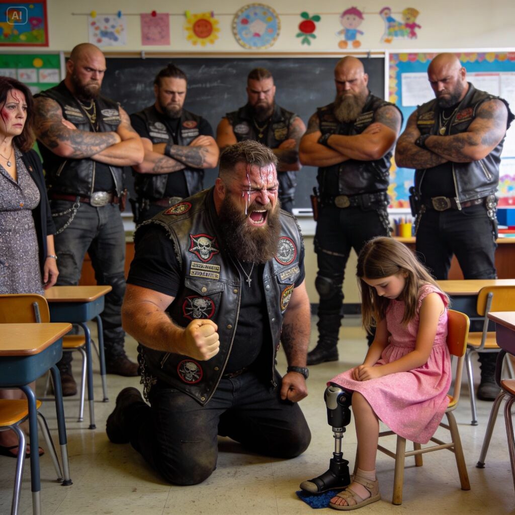 My dad wasn’t just a “biker.” He was a force of nature. He rode a Harley-Davidson that was so loud it seemed to tear a hole in the fabric of the quiet suburban afternoon. He was tall, broad-shouldered, and built like a brick wall. He wore a leather vest with the “Iron Disciples” patch stitched on the back—a snarling wolf’s head that looked ready to bite. His arms were covered in a tapestry of tattoos: skulls, daggers, flames. His beard was thick and wild.