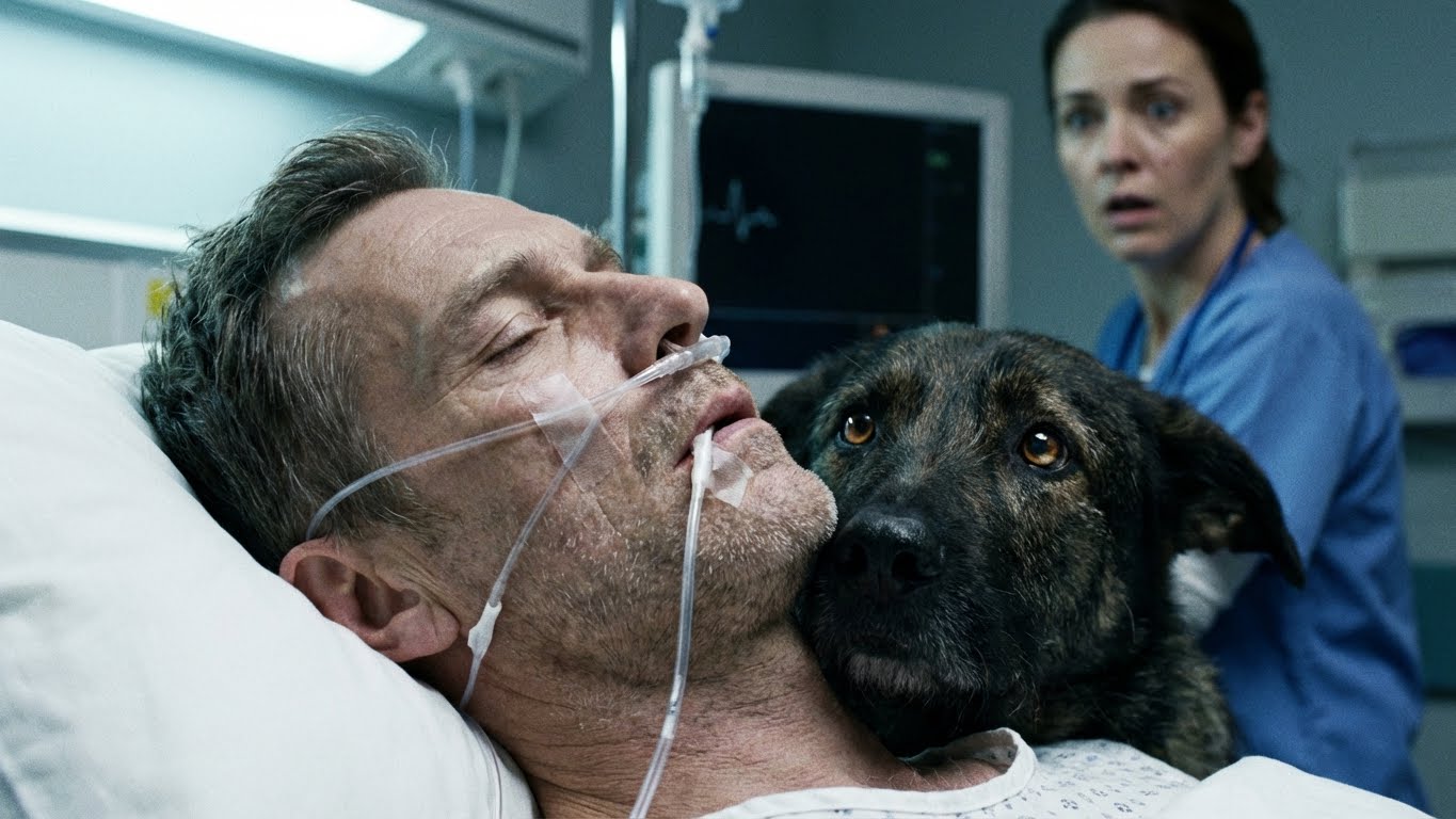 But Shadow wasn’t done. He had followed the ambulance, he had fought his way past security, and he was currently outside the glass, losing his mind. He wasn’t just barking; he was mourning, and then, he was acting. He broke free. He surged past the nurses, a blur of fur and desperation, and he leapt onto the bed where my lifeless body lay.