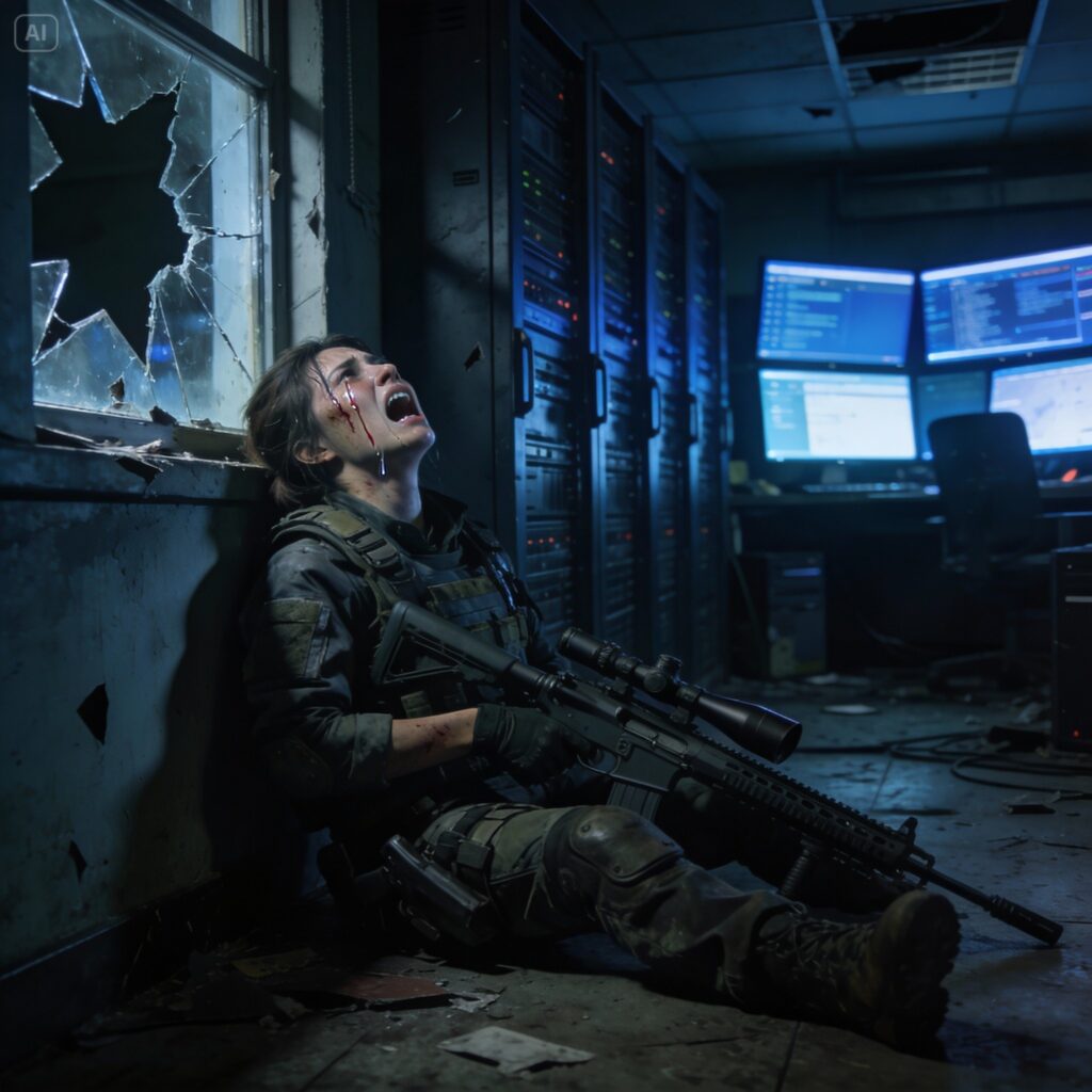 I watched through the scope as the figure on the catwalk jerked violently. The rifle fell from her hands, tumbling over the railing and plummeting into the darkness below.