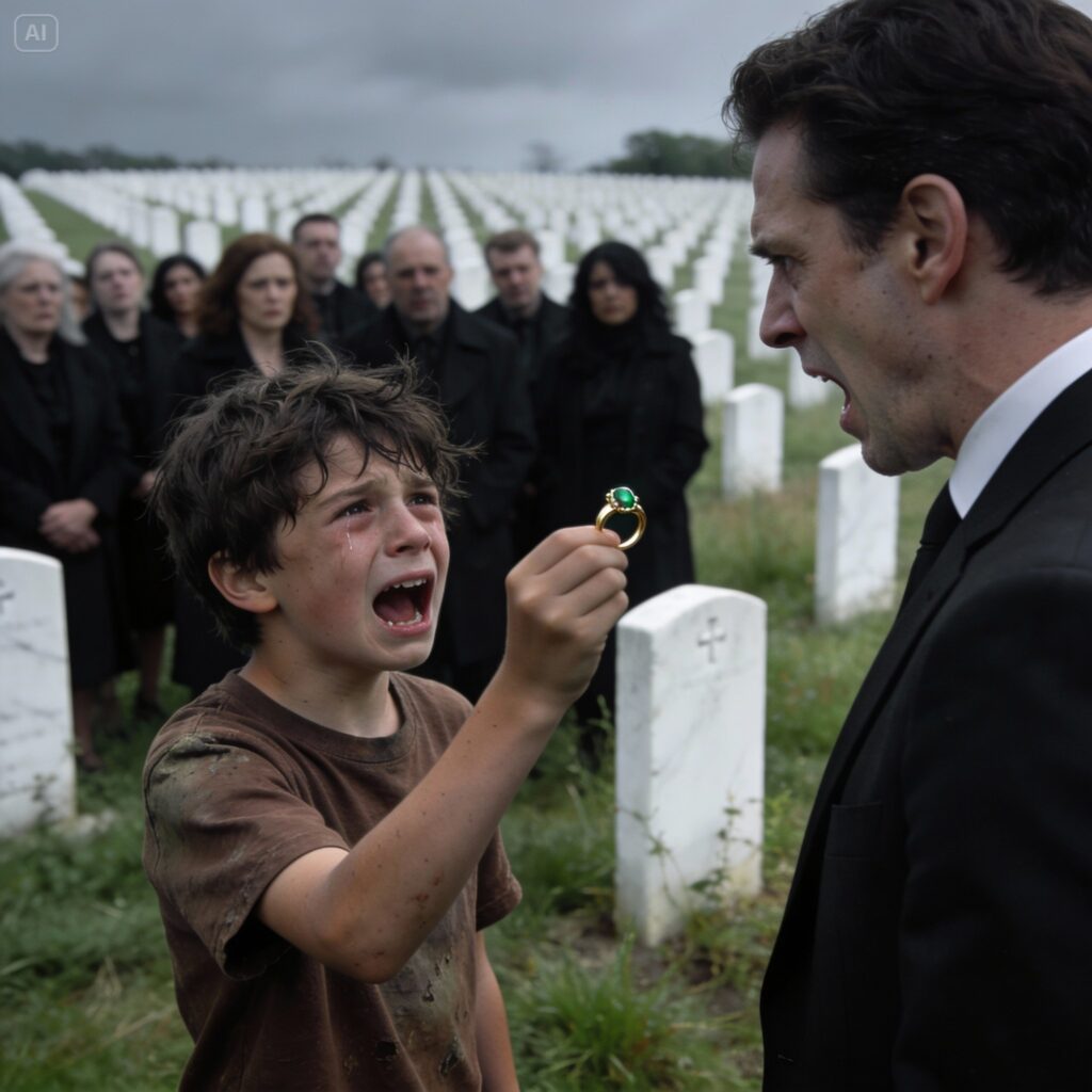 I felt a prickle on the back of my neck. I looked toward the edge of the crowd, near the old oak trees that lined the cemetery fence. A boy was standing there. He couldn’t have been more than ten or eleven. His brown t-shirt was thin and stained with dirt, his hair a wild mess that hadn’t seen a comb in weeks. He didn’t belong here. This was a gathering of the elite, of silk and perfume and polished shoes.