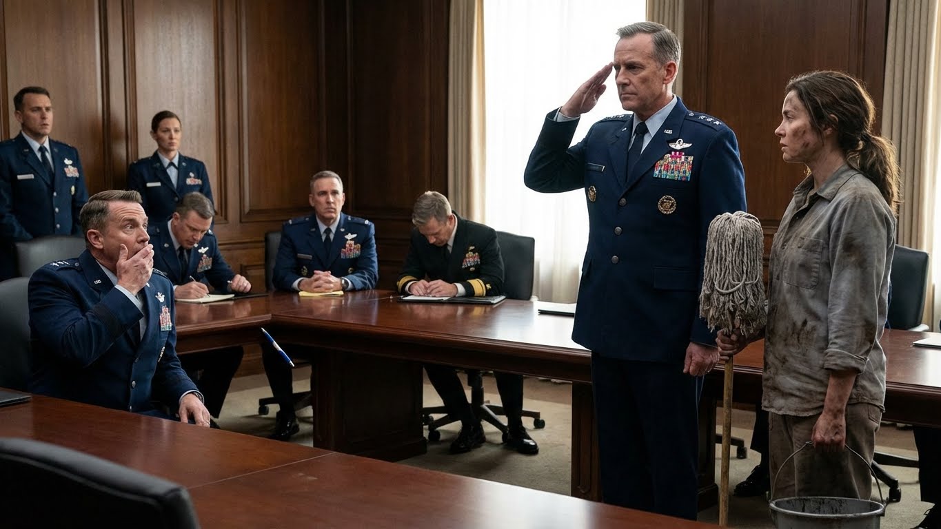 “Colonel,” Hawthorne’s voice was like gravel grinding together. He didn’t return the salute immediately. His eyes were scanning the room, landing on the mop bucket, then the blue water, and finally, on the top of my head.