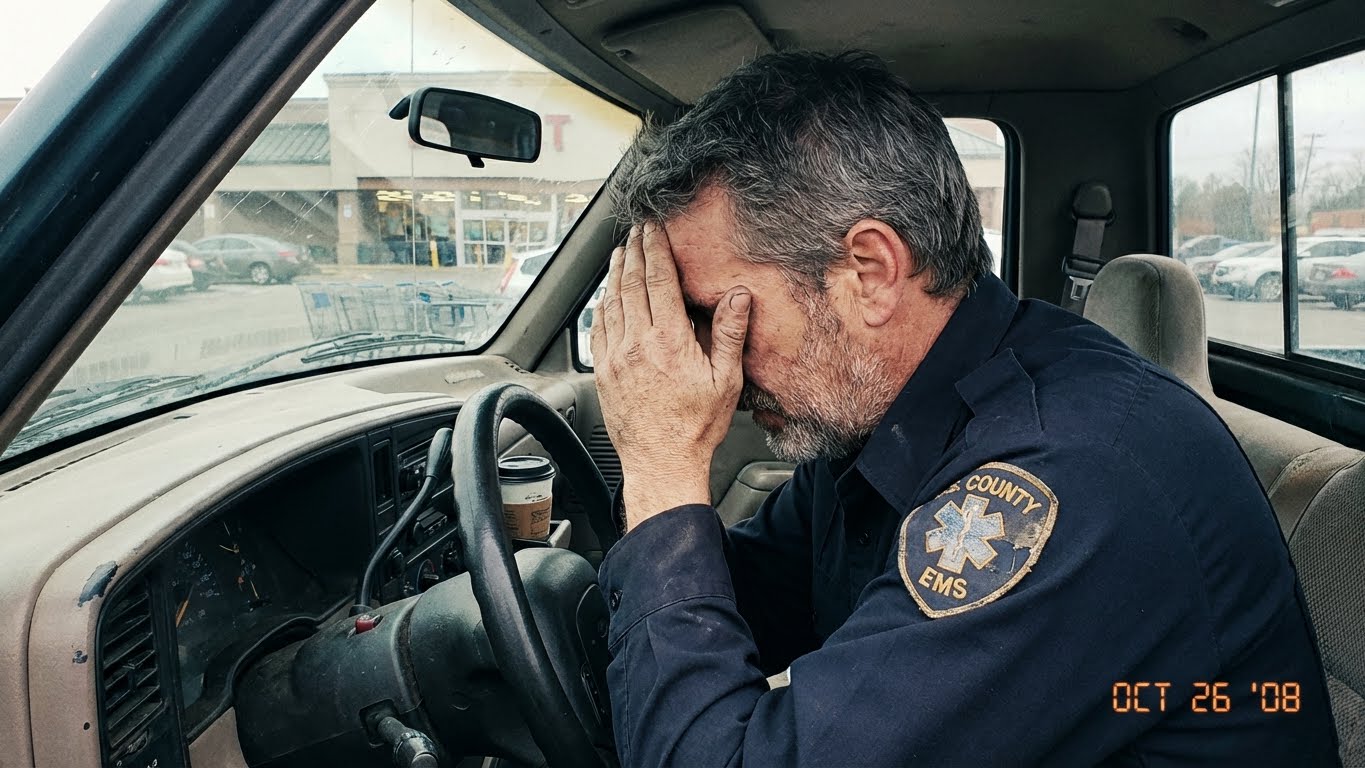 As I drove toward town, I passed the local hospital. An ambulance was backed into the bay, its lights still flickering a faint purple in the daylight. I saw two young medics leaning against the rear bumper, their faces gray with the familiar mask of “the long shift.” One of them looked like he couldn’t have been more than twenty-two.