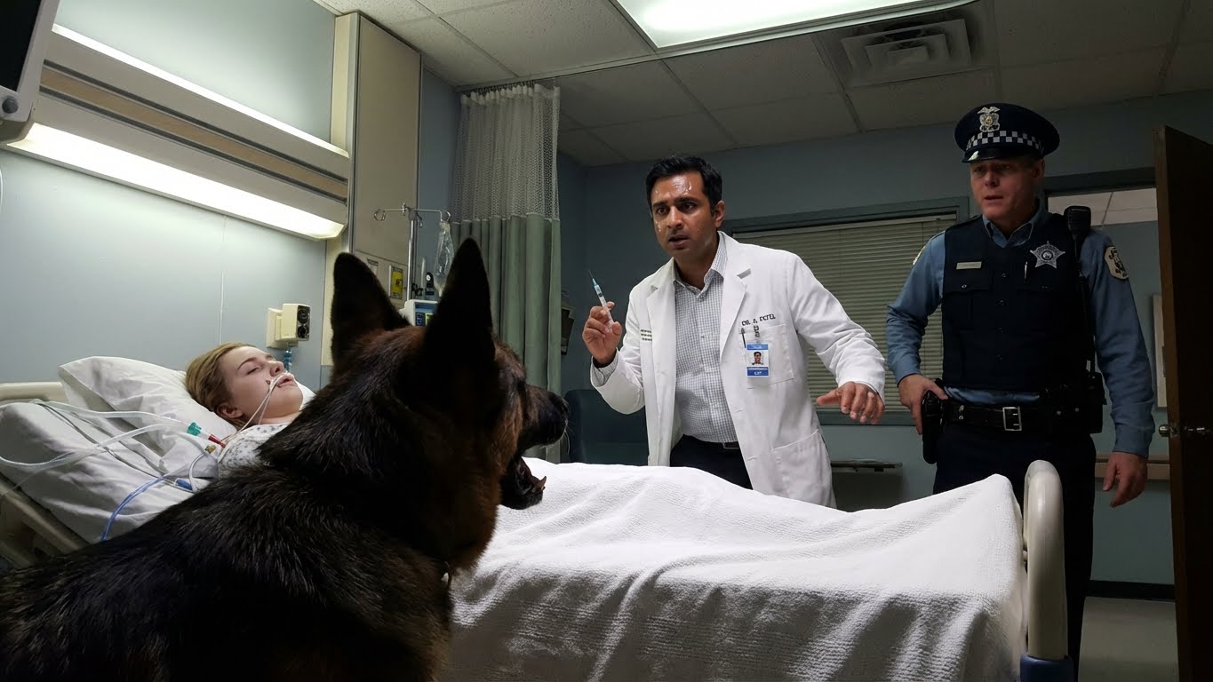 With a roar, the dog slammed his chest into the doctor, knocking him back against the equipment cart. Trays clattered, bottles smashed, and the syringe went flying across the floor, sliding to a stop near Officer Ramirez’s boots.