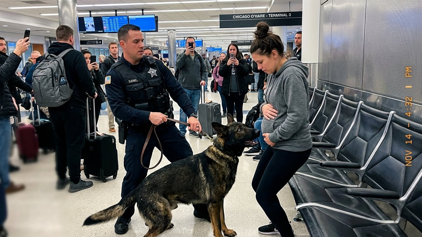 The air inside Chicago O’Hare International Airport always smells the same—a stale mix of burnt coffee, jet fuel, and high-stress anxiety. I’ve walked these floors for ten years. I know the rhythm of the place. I know the sound of a tourist rushing to a gate versus the sound of someone trying to disappear. My name is Daniel Reed, and my badge says K-9 Unit, but the real officer is the eighty-pound German Shepherd at the end of my lead.