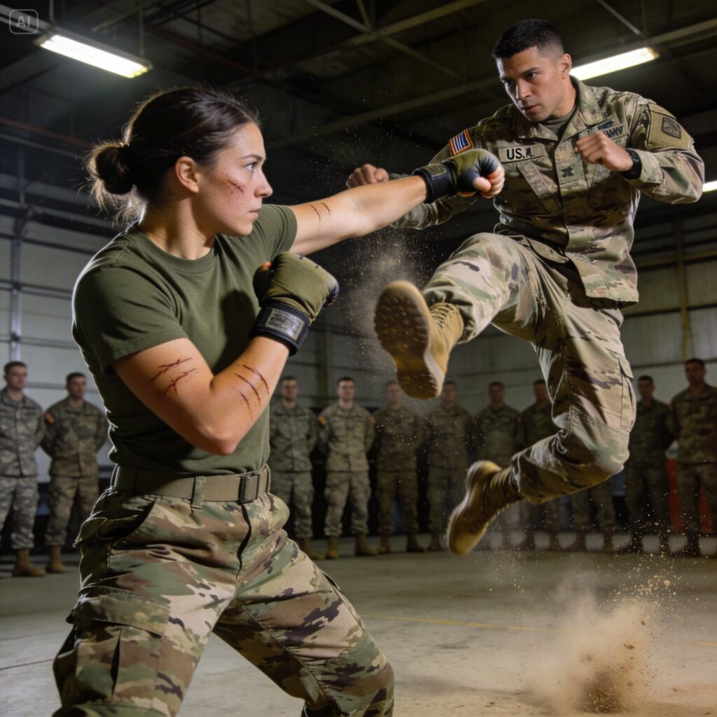 I tried to answer, to curse her, to say something that would salvage a shred of my dignity. But my lungs still refused to cooperate. I could only roll onto my side, coughing and gasping, my face burning with a mixture of oxygen deprivation and a shame so profound it felt like a physical illness. The silence stretched, each second a new layer of humiliation being laid upon me. Every single person in that room was processing the impossible: Staff Sergeant Marcus “Tank” Rodriguez, the invincible warrior, the walking embodiment of SEAL prowess, had been taken apart, effortlessly, by a civilian woman half his size.