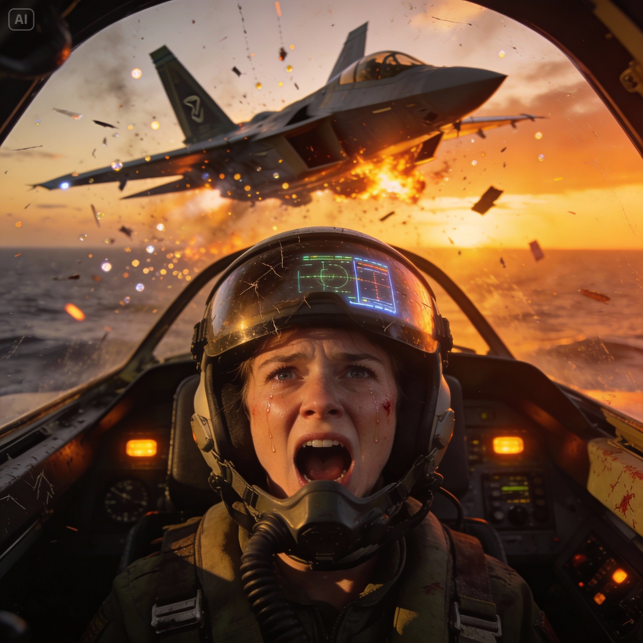 The white light wasn’t an explosion; it was a sensory overload, a total saturation of the cockpit that felt like being plunged into a sea of static and ice. My L39 was a dead weight, dropping through the clouds like a stone. Beside me, Logan’s F-22—the most advanced fighter jet on the planet—was suffering the same fate. We were two high-tech coffins falling toward the dark Pacific.