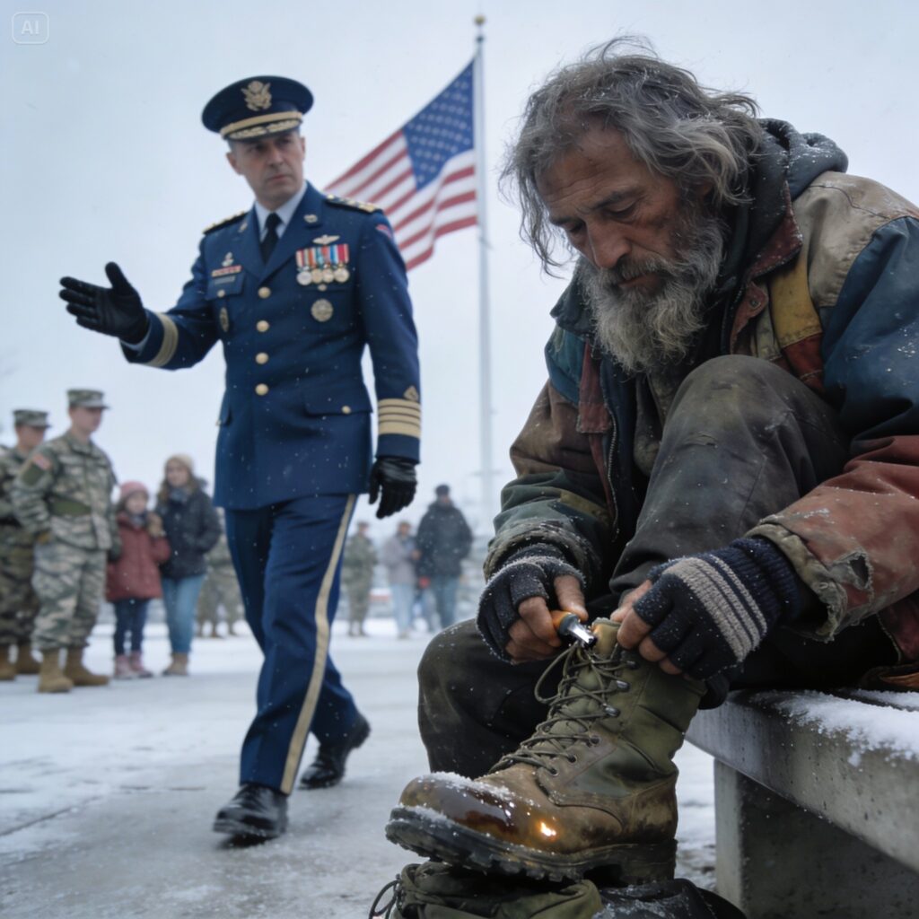 The cold goes deep when you’ve been sleeping on concrete for four years. It’s a specific kind of ache that settles into your bones and never really leaves, a constant reminder that you don’t belong to the warm, brightly lit world anymore. It was Friday morning, graduation day outside the gates of Fort Richardson. The air smelled crisp, a mix of freshly pressed uniforms, floor wax, and nervous excitement. For the hundreds of young recruits and their proud families rushing toward the bleachers, today was the start of everything. For me, sitting on that frozen concrete bench fifty feet from the entrance, it was just another day of trying to stay invisible enough to avoid trouble, but visible enough to earn a few dollars for a hot meal.