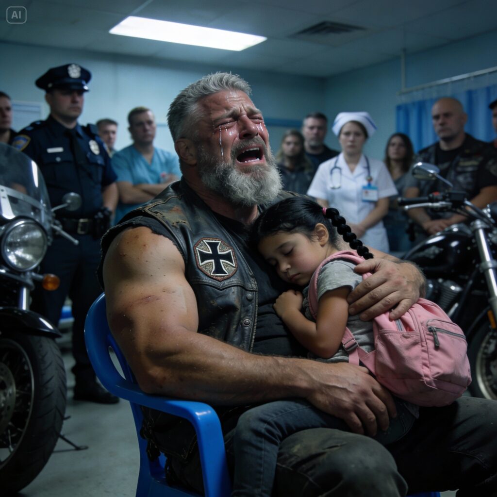 Tank, my sergeant-at-arms, sat across from me. He’s a man built like a brick wall, covered in tattoos that tell the history of a hundred bar fights and a thousand miles of open road. Usually, he’s the loudest guy in the room. Right now, he was silent, staring at the double doors where the surgeons were trying to stitch a fifteen-year-old boy back together.
