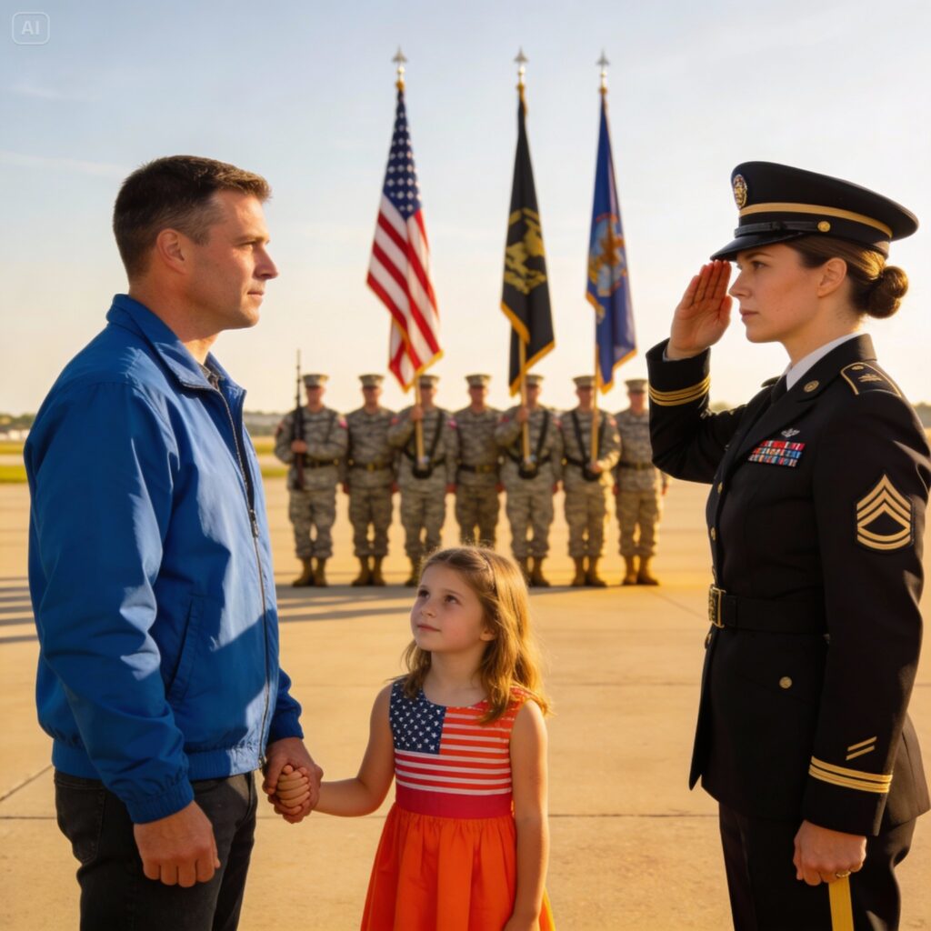 I just sat there, huddled deeper into my faded work jacket, wishing I had worn another layer. I’m just a mechanic now. I spend my days under lifts, wrestling with rusted bolts and piecing together old engines just to keep the lights on and put food on the table for my boy, Ethan. I wasn’t there to celebrate myself. I’ve spent years trying to shrink down, to let the polished limousines and the officers in their crisp, perfect uniforms pass by without a second glance. I felt that familiar, heavy weight pressing down on my chest—the suffocating weight of not mattering anymore.