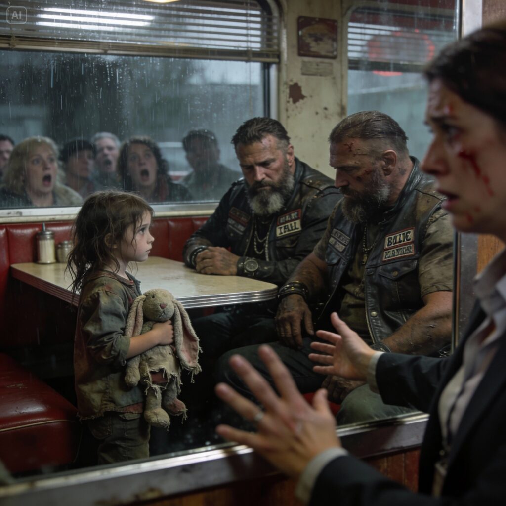 She just stood there, clutching her stuffed rabbit by the ear, staring up at two men who looked like they chewed glass for breakfast.