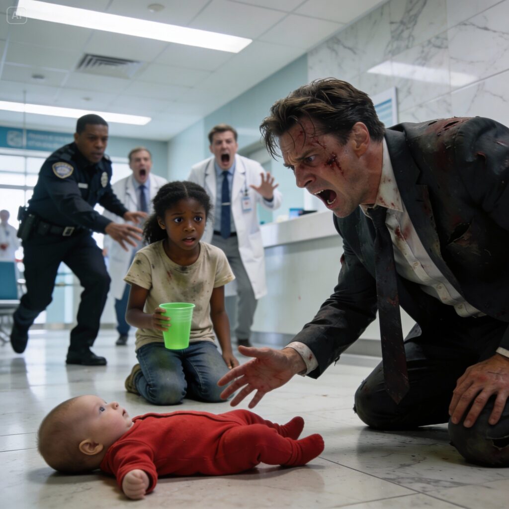 The entire lobby went silent. The receptionists stopped typing. The doctors looked up from Benjamin. The guard froze, his grip loosening slightly on the girl’s arm.
