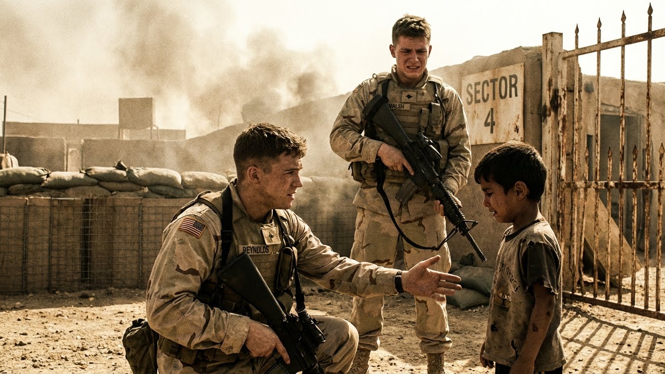 “We were told to hold the gate,” I started, my voice trembling. “There was a crowd. Refugees. It was chaos. Danny… Danny saw something. He saw a kid. A boy no older than ten, carrying a bag. The orders were clear: nobody crosses the line. No exceptions. The tension was at a breaking point.”