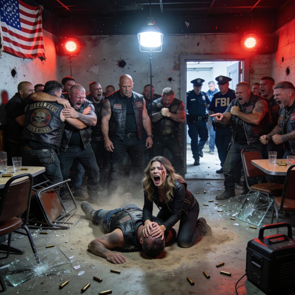 There was a rumble that shook the pavement, deeper and louder than the sirens. A motorcycle. Not just a motorcycle—a beast of a machine, all black chrome and roaring noise. The man sitting on it was terrifying. He was huge, wearing a leather vest with patches I didn’t recognize, his arms covered in dark ink. He had a beard like a thicket and sunglasses that hid his eyes.