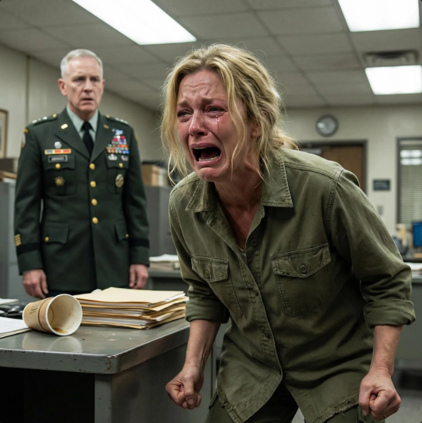 The Colonel, whose name tag read Harrison, was still standing, his hand half-extended as if to point at the “coffee girl” again. But his finger trembled. He looked at General Miller—a man who had led divisions into the heart of darkness and returned with a chest full of medals—and saw a man who looked like he was facing a ghost. Miller’s eyes were glassy, his posture uncharacteristically slumped as if the weight of the stars on his shoulders had finally become too much to bear.