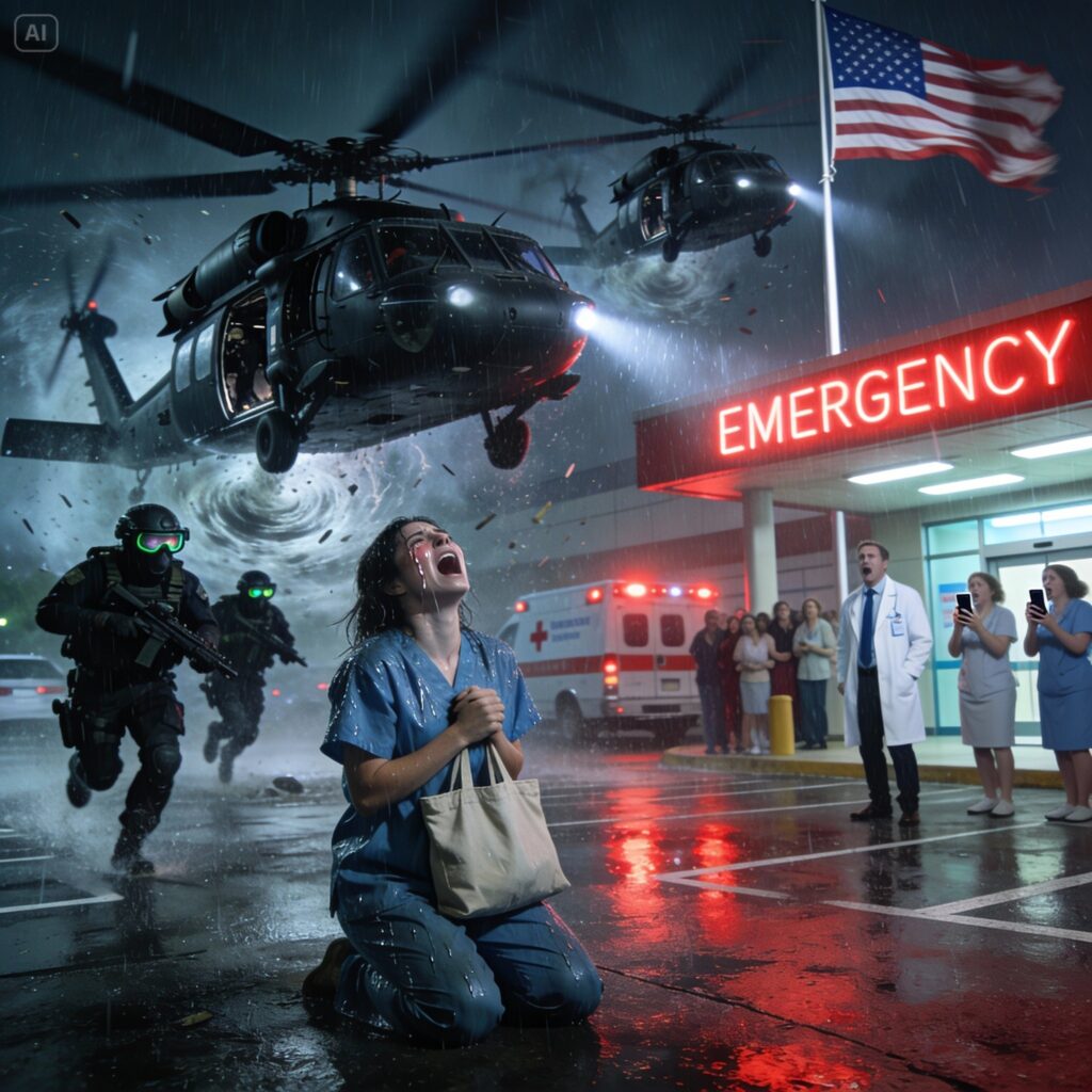 They hadn’t just landed; they had invaded. The hospital parking lot, usually a quiet place for shift changes and tired sighs, had been transformed into a forward operating base in a matter of seconds. The sheer noise was deafening—a rhythmic, thumping roar that vibrated in my chest cavity, rattling the very teeth in my skull. It was a sound I hadn’t heard in two years. A sound I had prayed I would never hear again.
