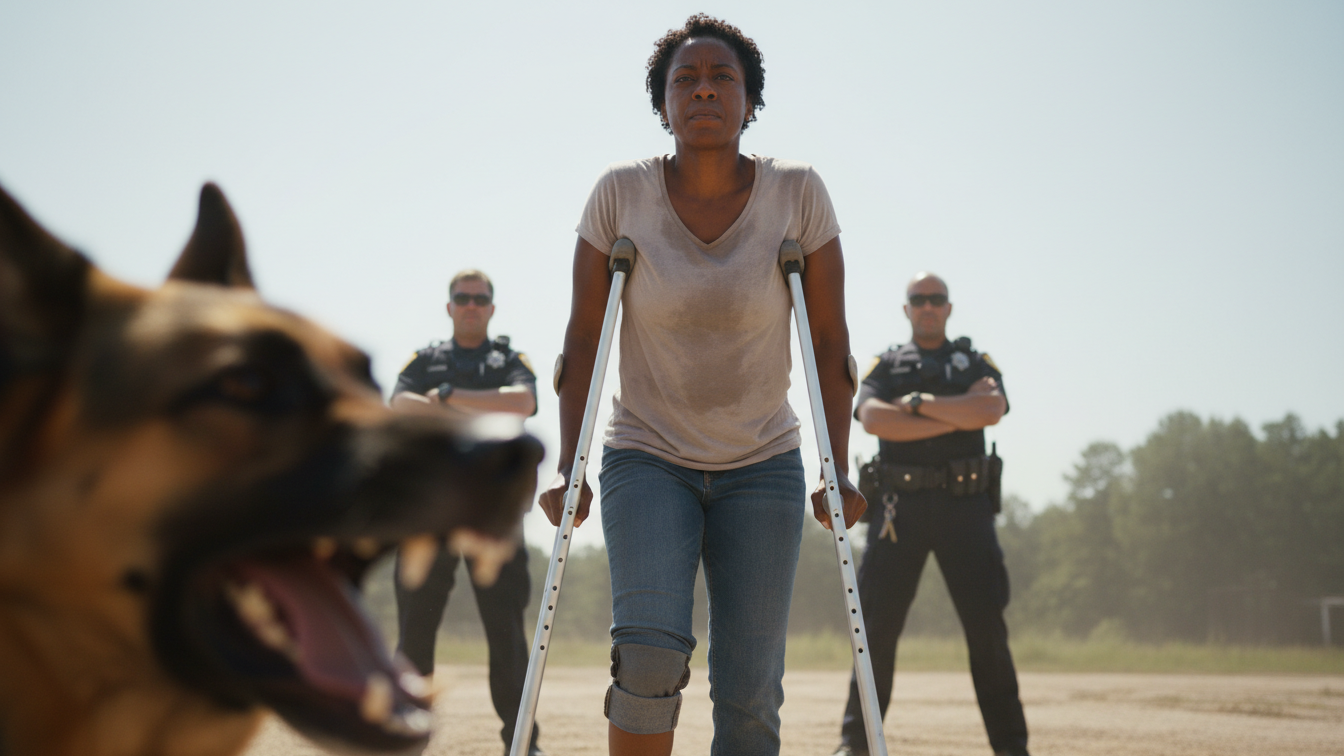 The sound of the dog launching forward was like a thundercrack. He tore across the distance between us, kicking up dust, teeth bared, a missile of muscle and instinct aimed right at my chest. The officers chuckled. They expected me to scream. They expected me to curl into a ball and beg. They wanted to see the “cripple” break.
