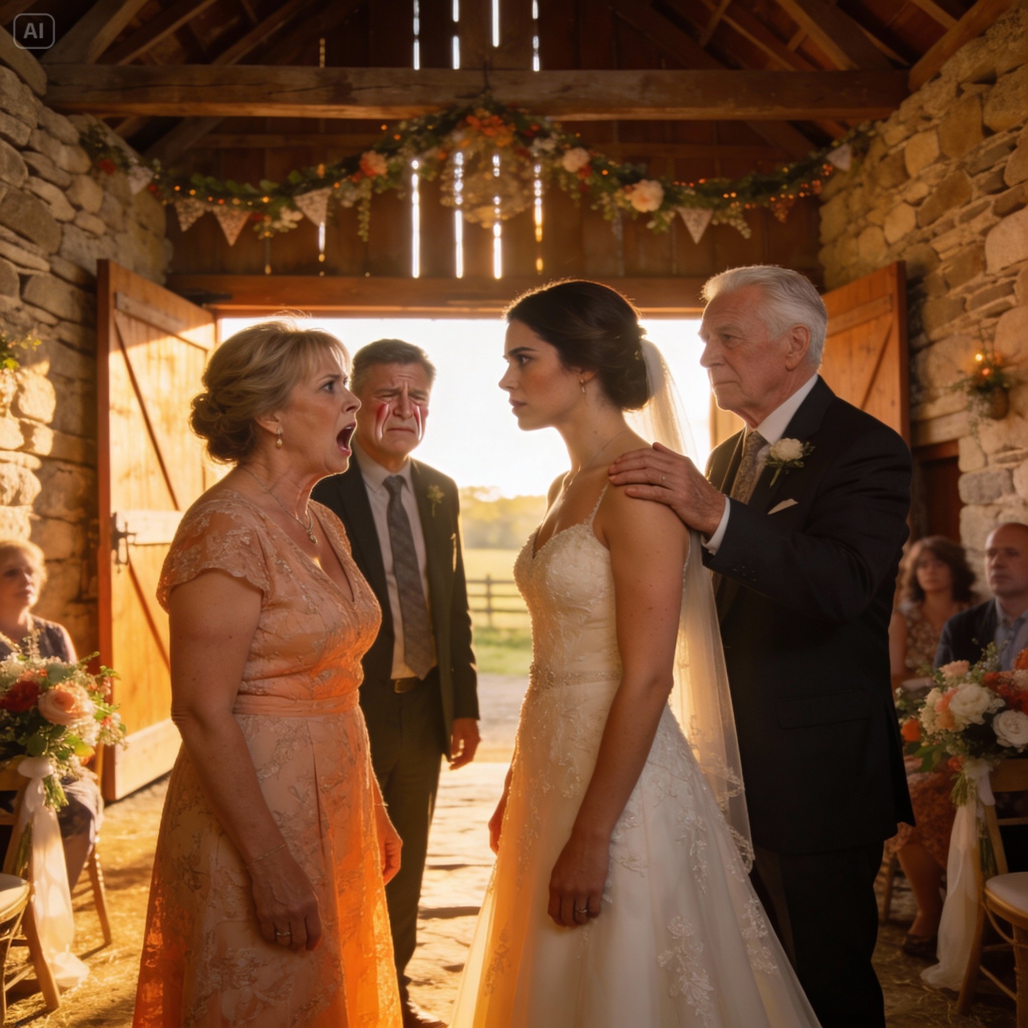 The music softened. “Ladies and gentlemen, if I could have your attention, please,” the MC said. The room quieted, a wave of shushing spreading through the barn. Guests turned toward the front, champagne glasses paused halfway to their lips.