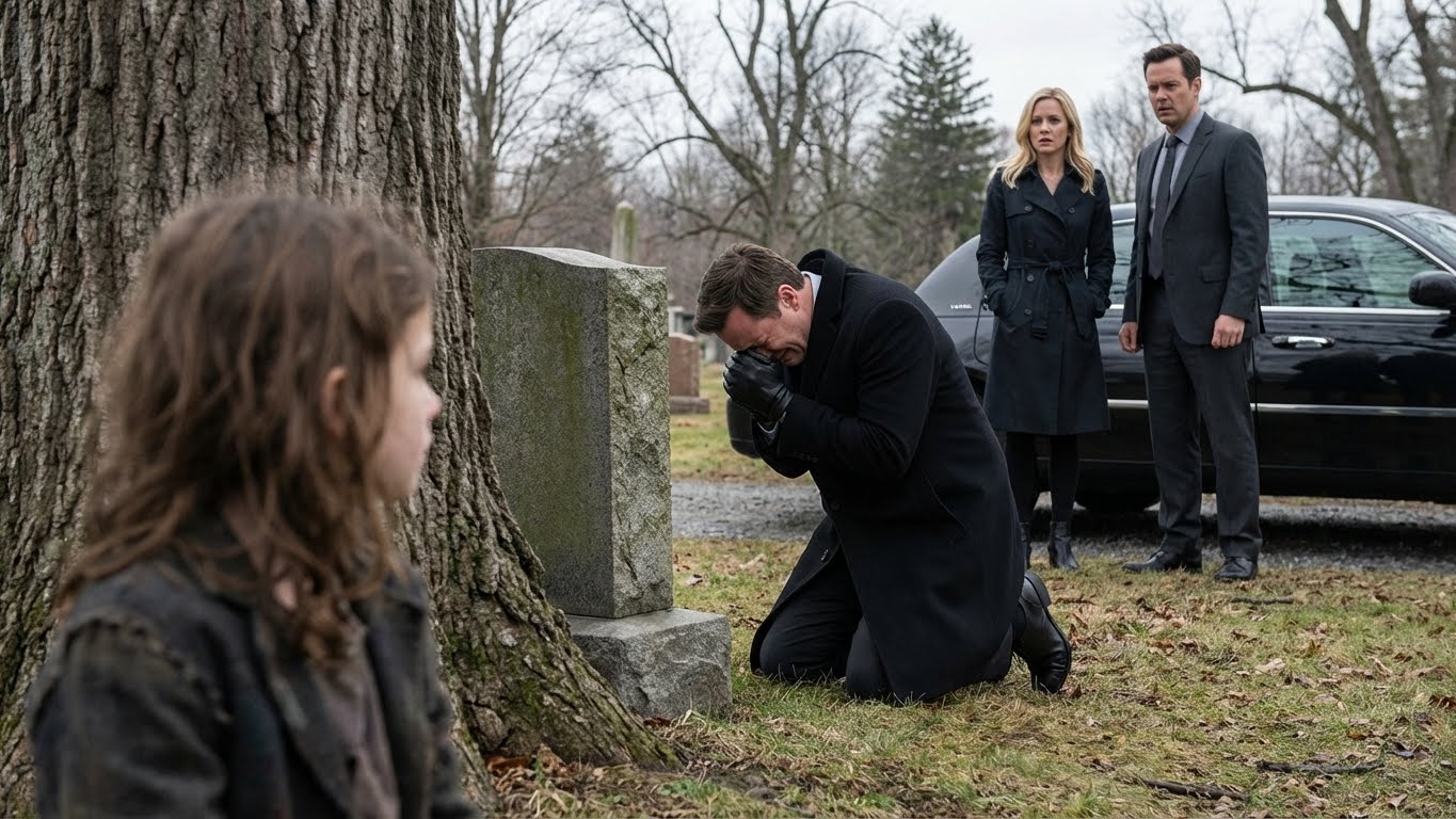 He knelt before the polished granite headstone, his knees sinking into the damp, cold earth. The inscription mocked him with its finality: Isabella Harrison. Beloved Daughter. Gone too soon.
