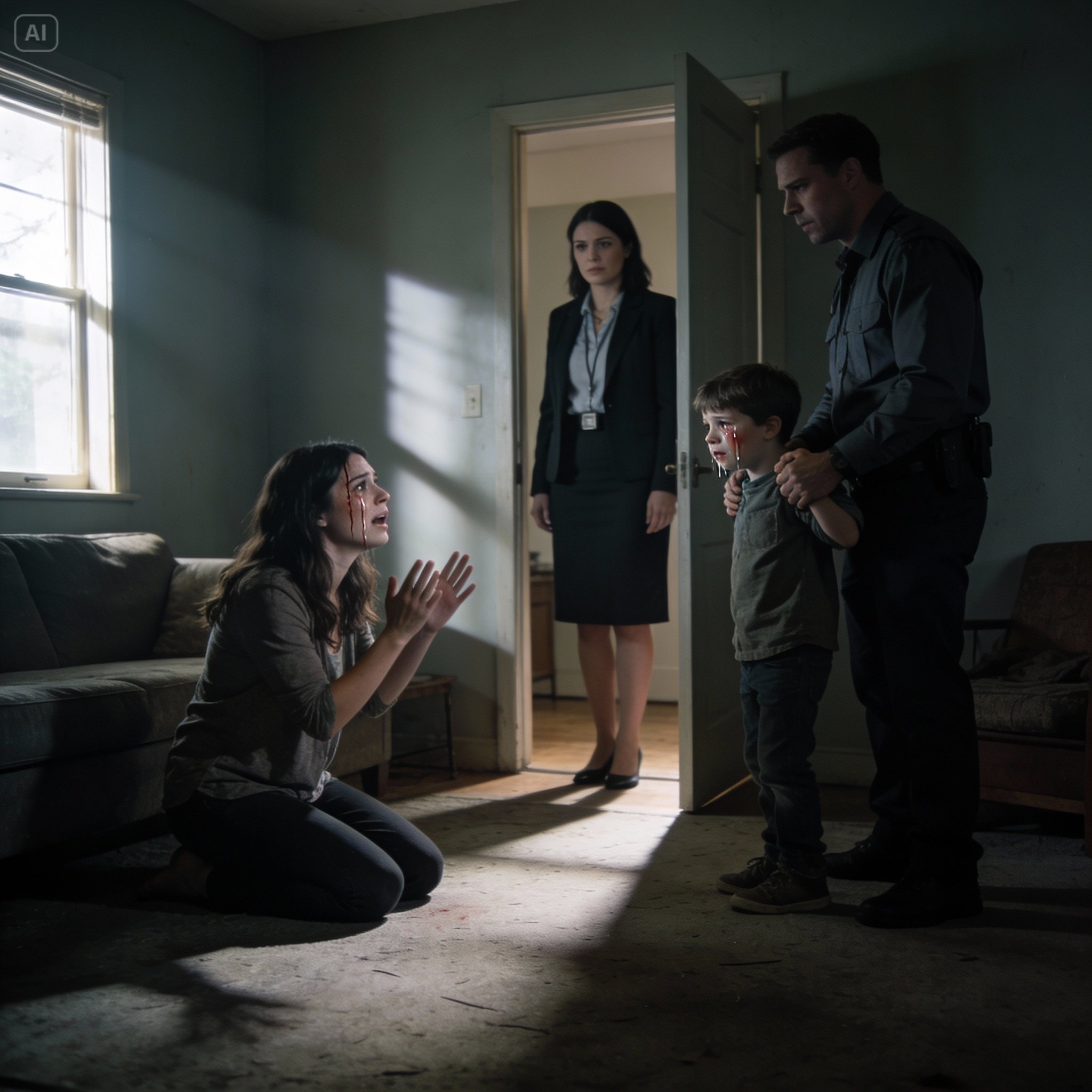 “I’m Angela Whitaker,” she said, her eyes scanning the dark apartment behind me, her gaze lingering for a moment on Leo, who was peering out from behind my legs. “And this is my colleague, Will Simmons. We’re with the Department of Child and Family Services. We received a report concerning the welfare of your son. May we come in?”