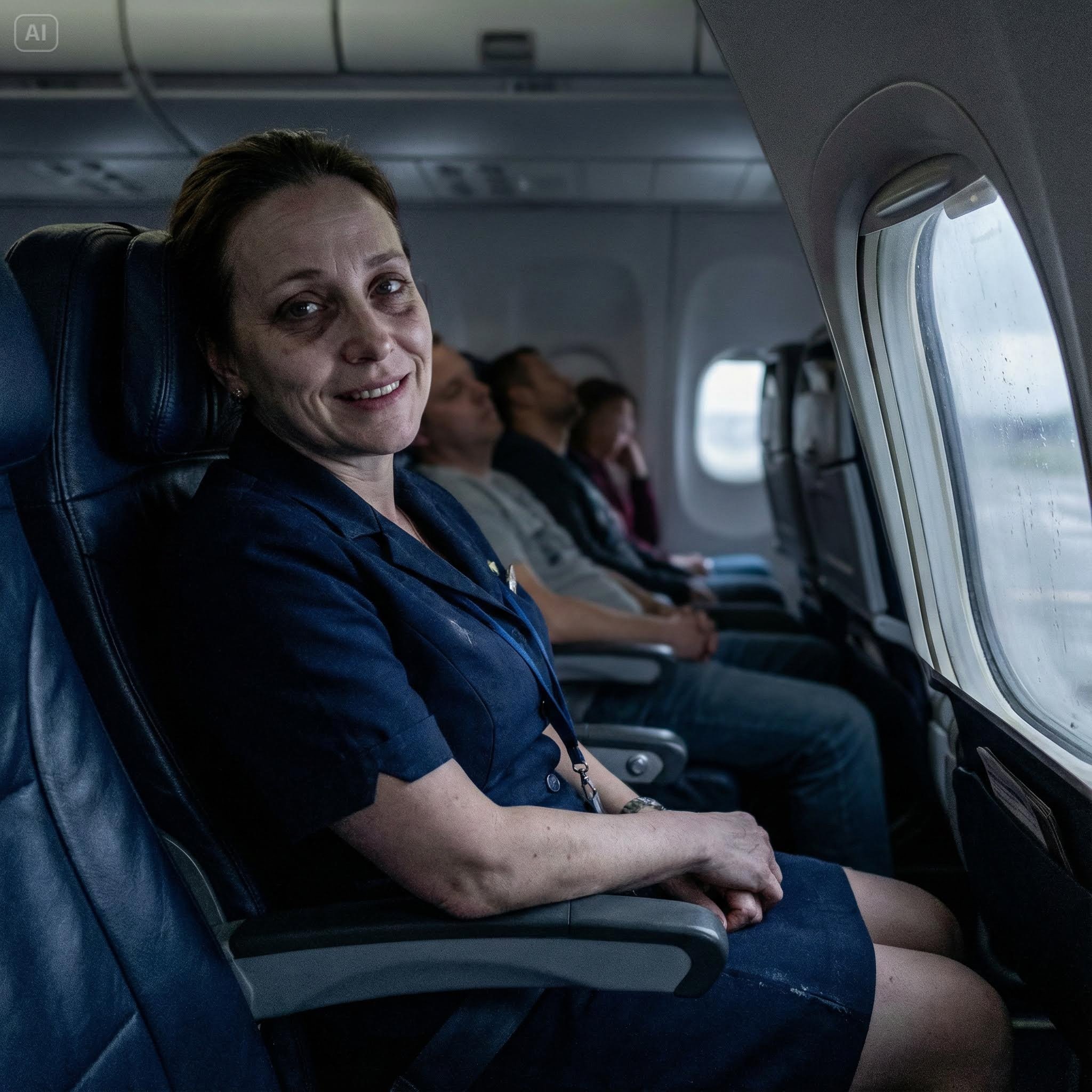 “I can put you on the jumpseat,” she murmured, glancing around to make sure a supervisor wasn’t watching. “But you have to promise me you’ll help with the trash collection if the crew asks. Technically, it’s for active crew only, but… you look like you’re about to pass out.”