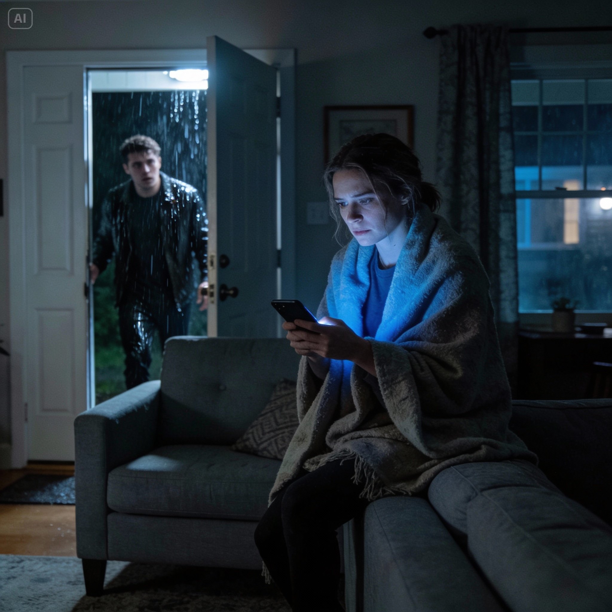 I stood up, adrenaline flooding my system, half relief and half fury. The front door unlocked, and Caleb walked in. He was wearing his hoodie and jeans, soaked through. His hair was plastered to his forehead. He looked exhausted, his eyes rimmed with red, but there was something else in his expression—something jittery. High-strung.