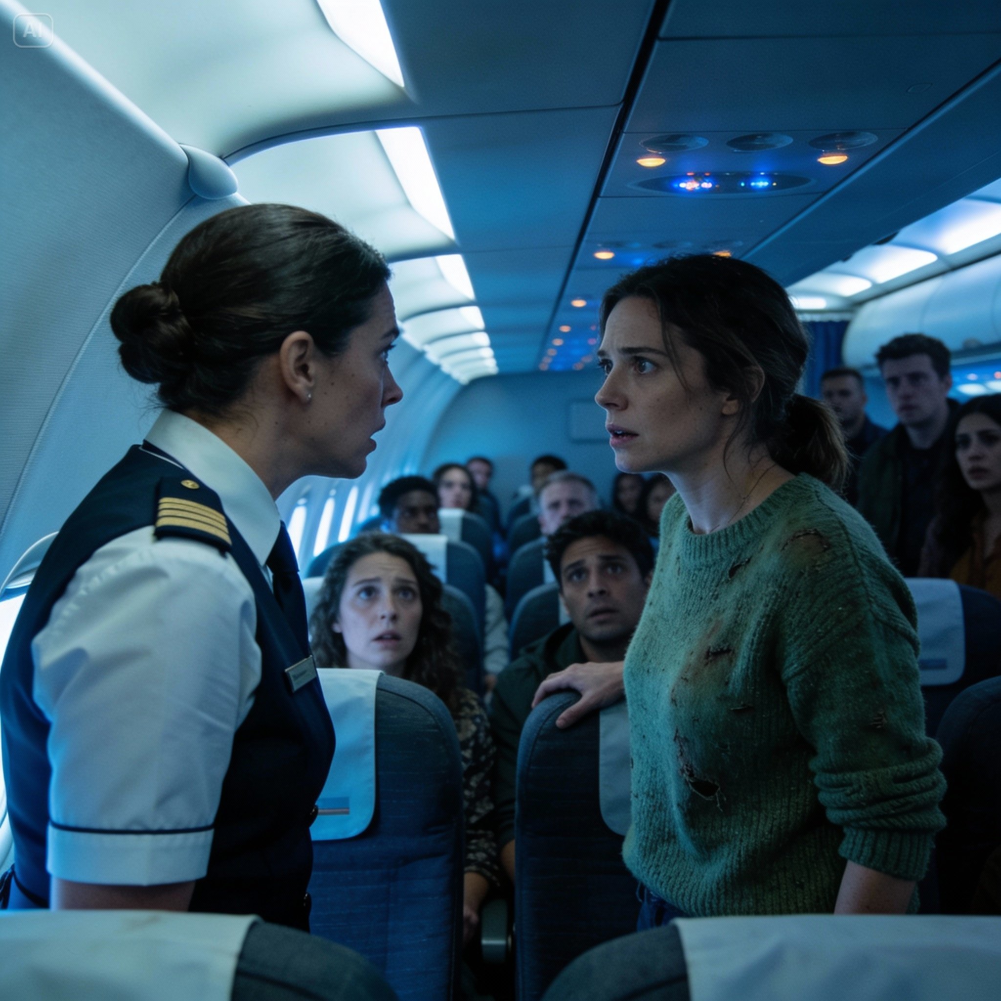 The businessman who had been typing on his laptop was now staring, his mouth slightly open. The mother in row 9 clutched her baby tighter, her eyes tracking my movement as if I were a priest walking toward a dying man. They didn’t know what was happening, only that the flight attendant looked terrified and that I—the woman in the oversized green sweater—was the only one moving.