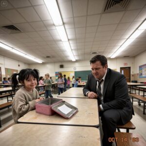 The cafeteria was a cacophony of youth. Hundreds of children sat at long laminate tables. The noise was overwhelming—the clatter of plastic trays, the crinkle of chip bags, the high-pitched chatter of gossip and games. Richard stood in the doorway in his five-thousand-dollar suit, feeling like an alien species.