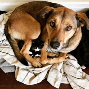 I lay awake at night, staring at the ceiling. In rescue, you are taught to be objective. You can’t save them all. You can’t keep them all. The goal is to get them adopted so you can save the next one. If I insisted on them staying together, they might wait in foster care for months. It’s hard enough to adopt out a big dog. It’s nearly impossible to find a home that wants a big dog and a kitten.