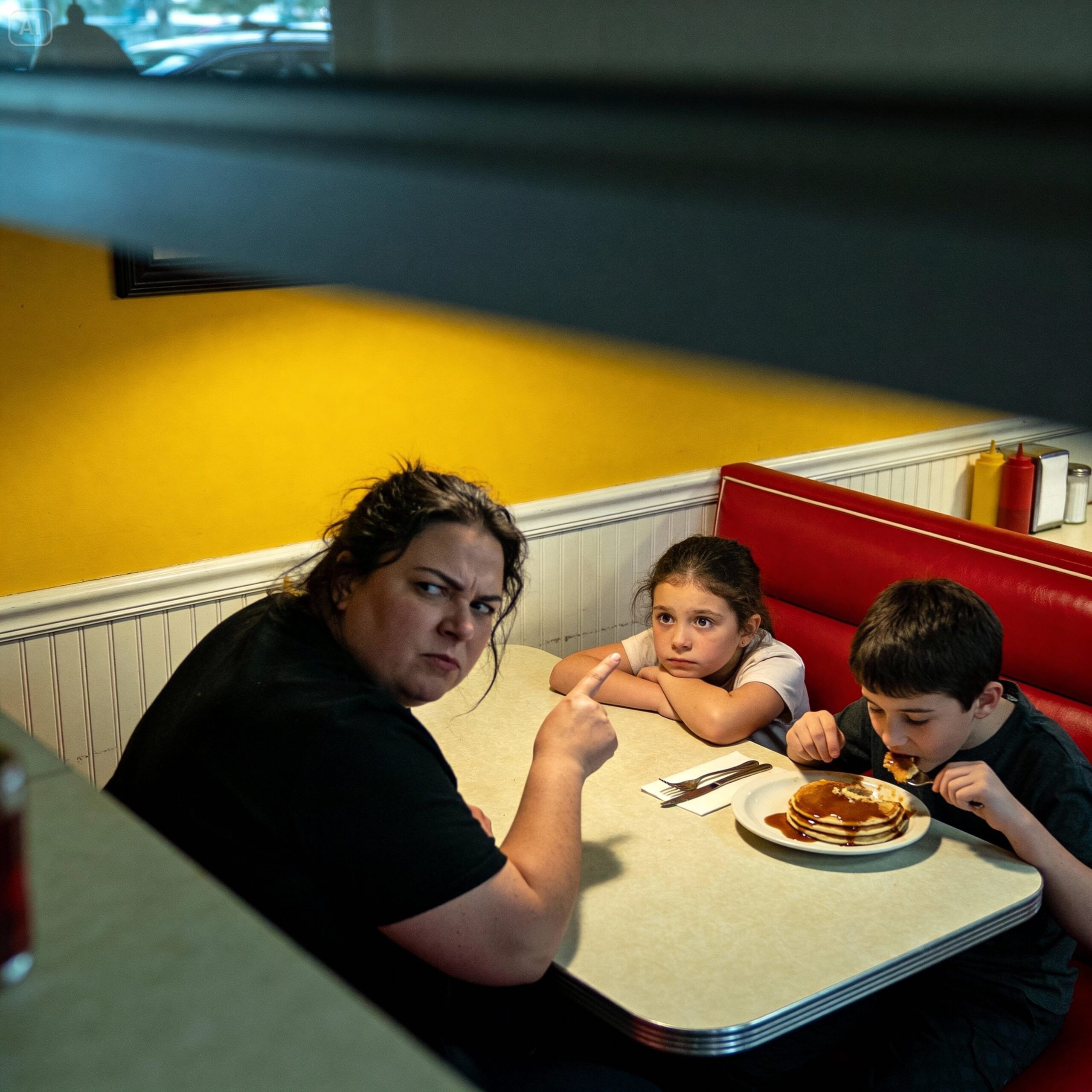 Travis was already digging into his pancakes, the fork scraping loudly against the ceramic plate. He didn’t look up. He didn’t have to. He knew he was safe.