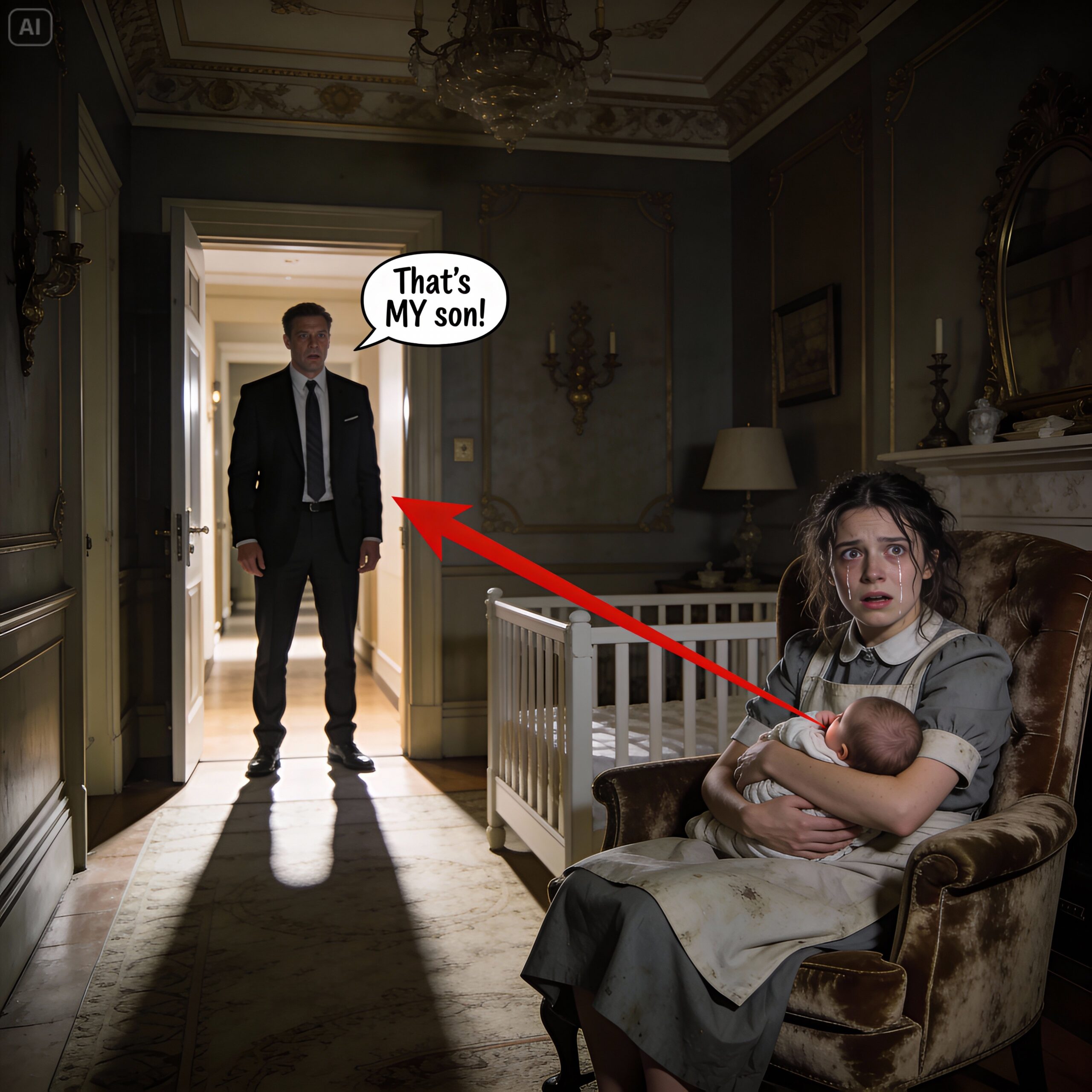 The mahogany door creaked open, and I froze. The sight before me in the dim nursery light was something my mind refused to process. Elara, the quiet cleaning lady who had been working at my estate for less than a month, was sitting in the velvet armchair. She was holding Jude, my two-month-old son, against her chest.