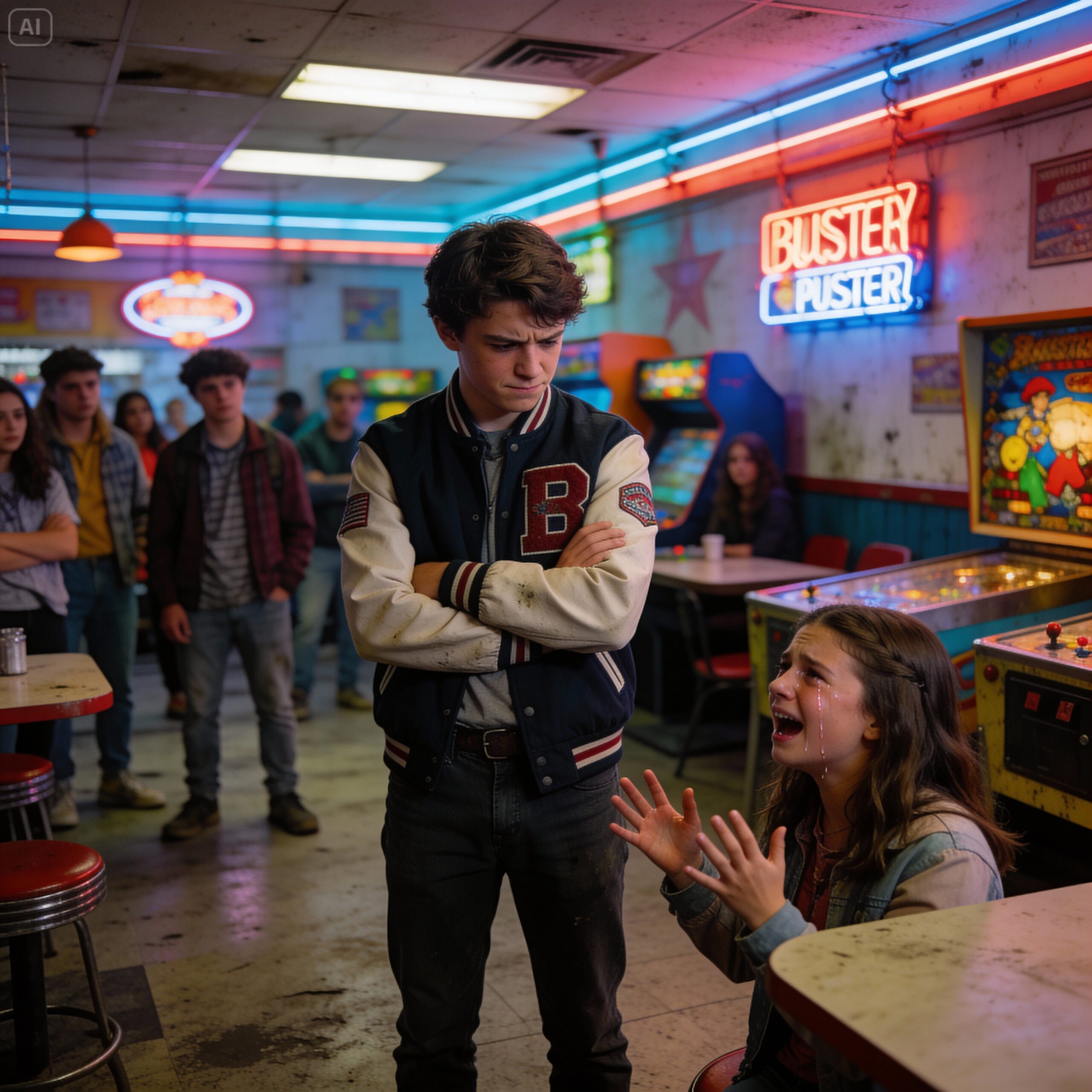 I scanned the room, clutching my duffel bag tight to my chest. I saw them in the back corner, near the racing games. The “crew.” Mike, Sarah, distinct laughs rising above the noise. And in the center of them, leaning back on a stool with a smug grin, was Buster.
