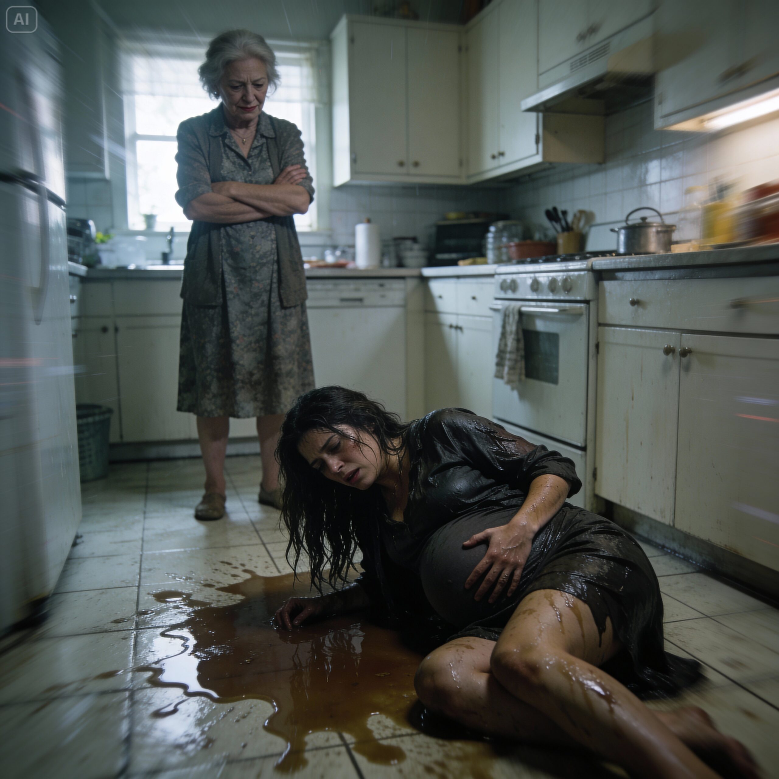 The water hit my chest and belly with the force of a thrown brick. It wasn’t a spill—it was an attack. The shock of the freezing temperature burrowed into my skin so fast it felt like knives, and my knees just gave out. I didn’t even have time to scream before I hit the floor, my shoulder scraping the cabinets, my hip slamming into the tile with a thud that vibrated through my entire body.