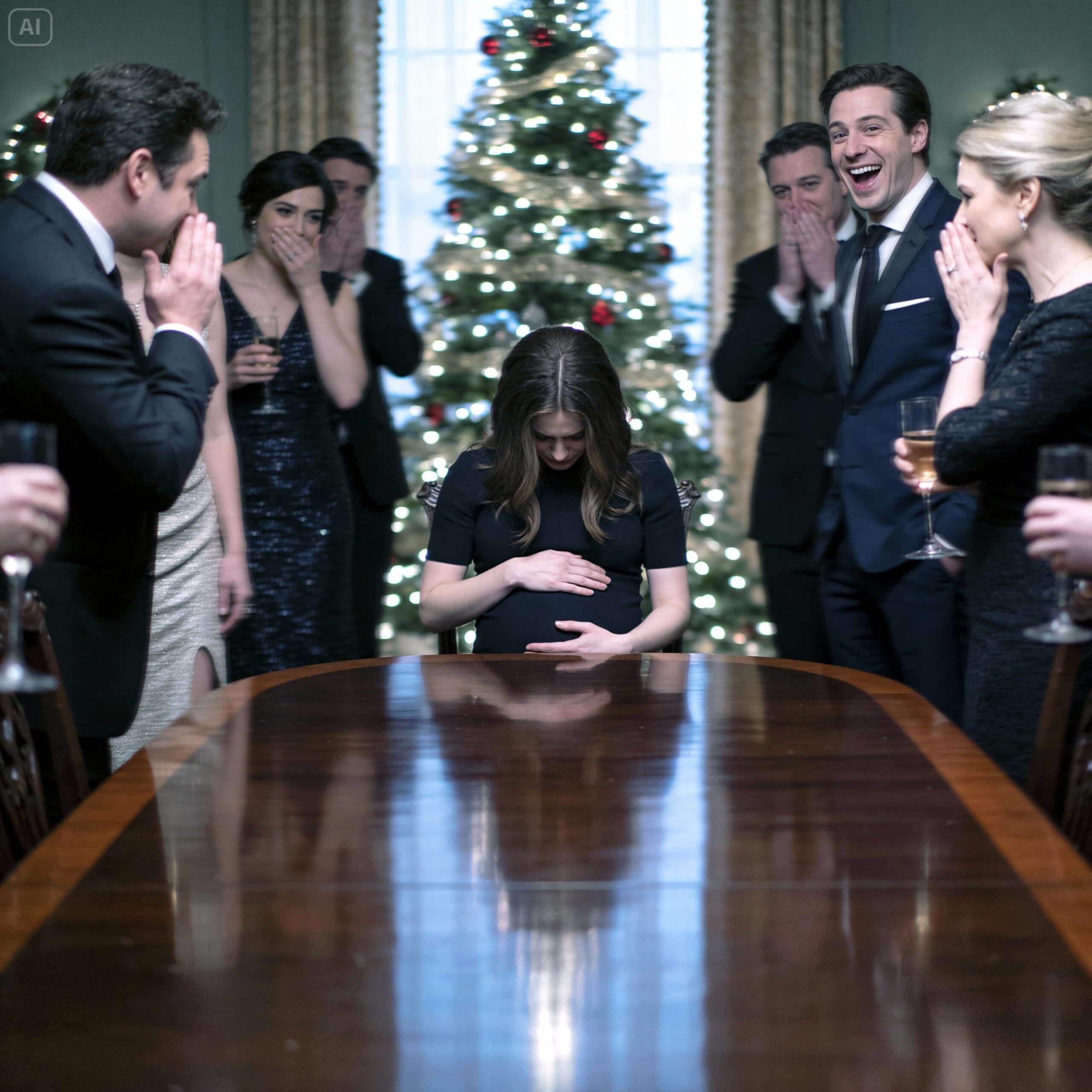 I didn’t look up at first. I just stared at the marble coaster under my water glass, watching the condensation pool at the bottom. I was seven months pregnant. My ankles were swollen, my back ached, and I was surrounded by people who had spent three years tolerating me.