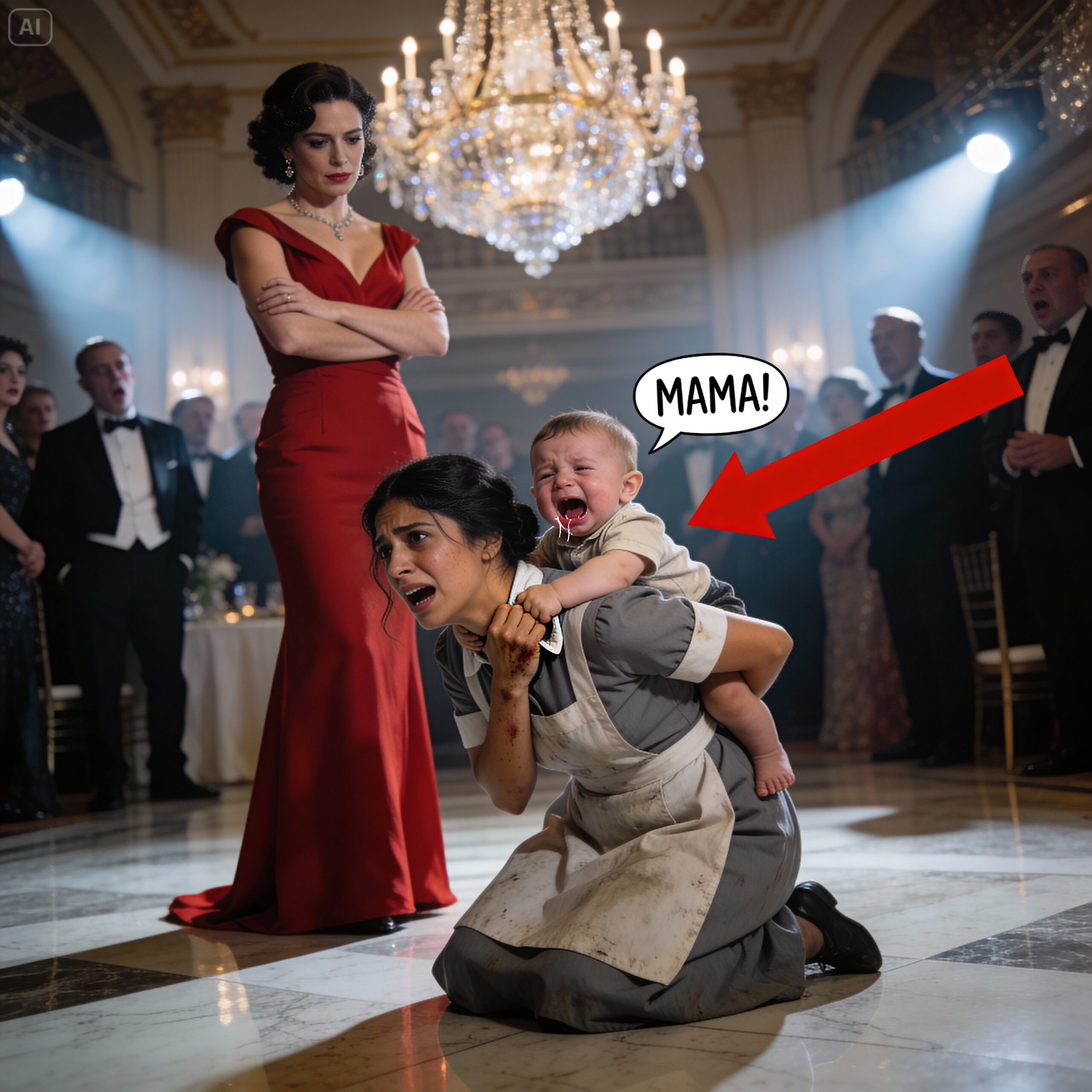 A woman in a plain uniform, hair pulled back, a cleaning cart beside her. The maid. Her name was Marabel. Most guests hadn’t noticed her all night. She was invisible, the way staff always were at events like this. My son reached toward her, then he screamed louder. Before I could stop him, he twisted out of my arms, dropping to the marble floor.