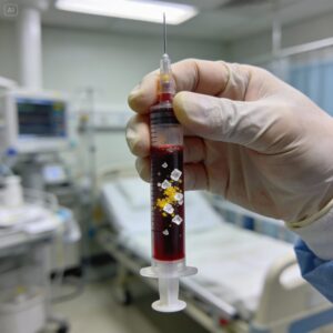 The bl*od wasn’t just dark red. Floating inside the syringe, suspended in the fluid like a snow globe from hell, were particles.