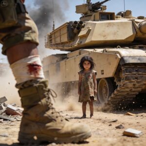 I limped behind the tank, keeping pace with the metal beast. Every step sent a jolt of agony up my spine. The dust was clogging my eyes. I could see Dave ahead of me, holding the little girl tight. She was small, so incredibly small against the backdrop of this industrial slaughter.